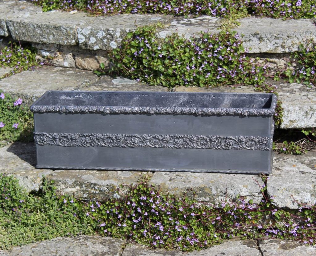 The hand-crafted decoration on this finely modelled, solid lead window box takes its inspiration from Greek mythology; Cornucopia (more commonly known as the ‘horn of plenty’) represents a goat’s horn that traditionally played an important part of a feast when filled with fruit, and from which – legend has it – as an infant, the god Zeus was fed. With added intricate floral and beaded embellishment around the mouldings, this window box is truly eye-catching. This planter has been traditionally handmade in England by Heritage Lead Planters.