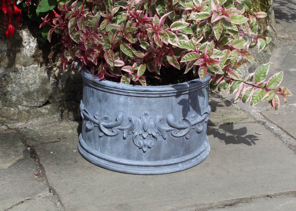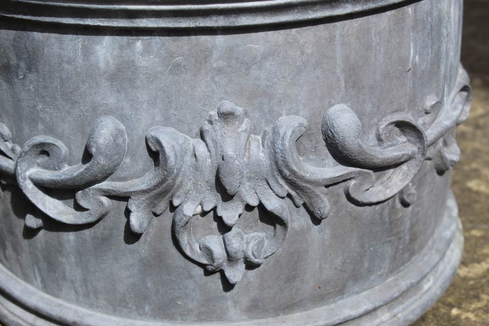This solid lead planter is encircled with an original sinuous leaf and tendril design synonymous of the Art Nouveau period. The overall appearance of this hand carved embellishment characterises what was also referred to as the ‘Modern Style’ from its inception during the late 1800s, and with it being of an organic nature, it would make a perfect addition to your garden. This foundry-cast lead planter has been traditionally handmade in England by Heritage Lead Planters.