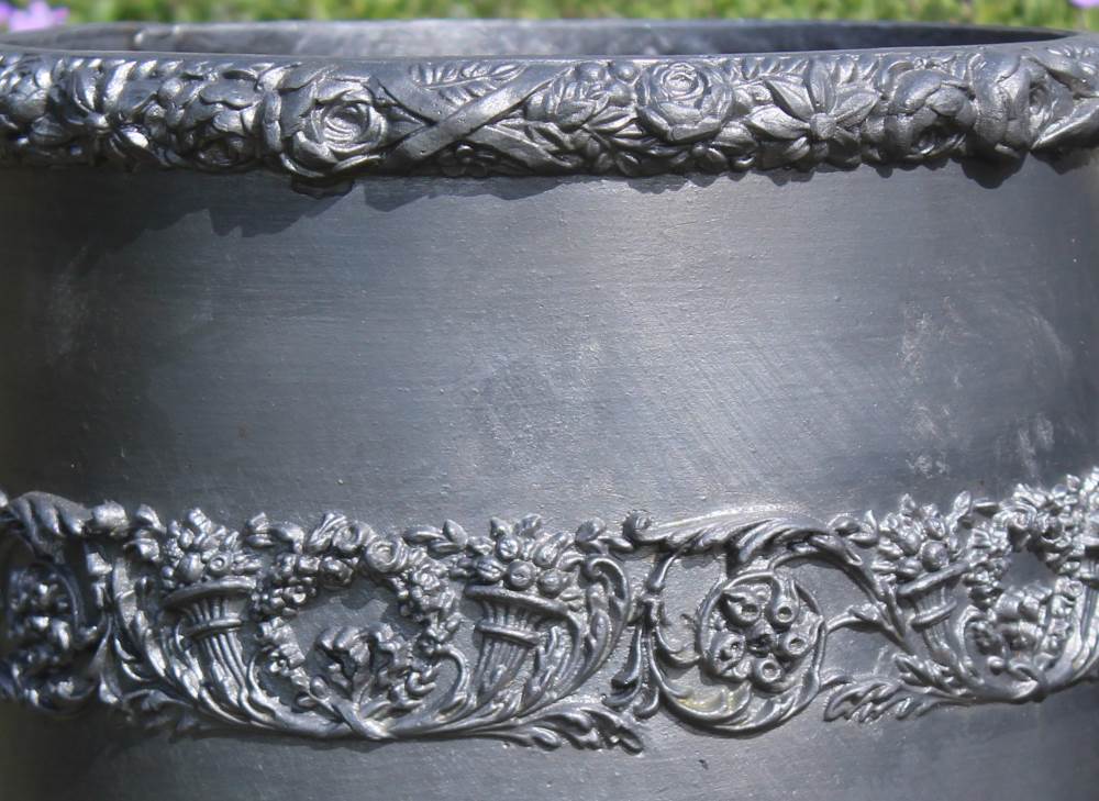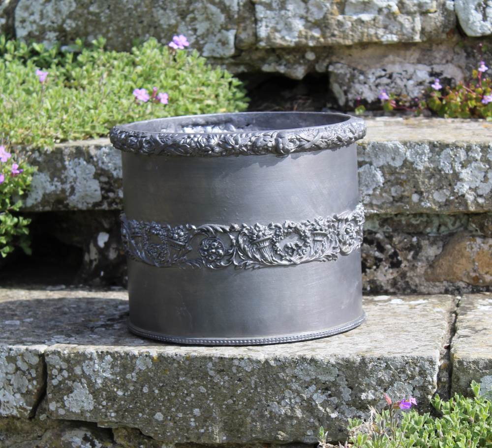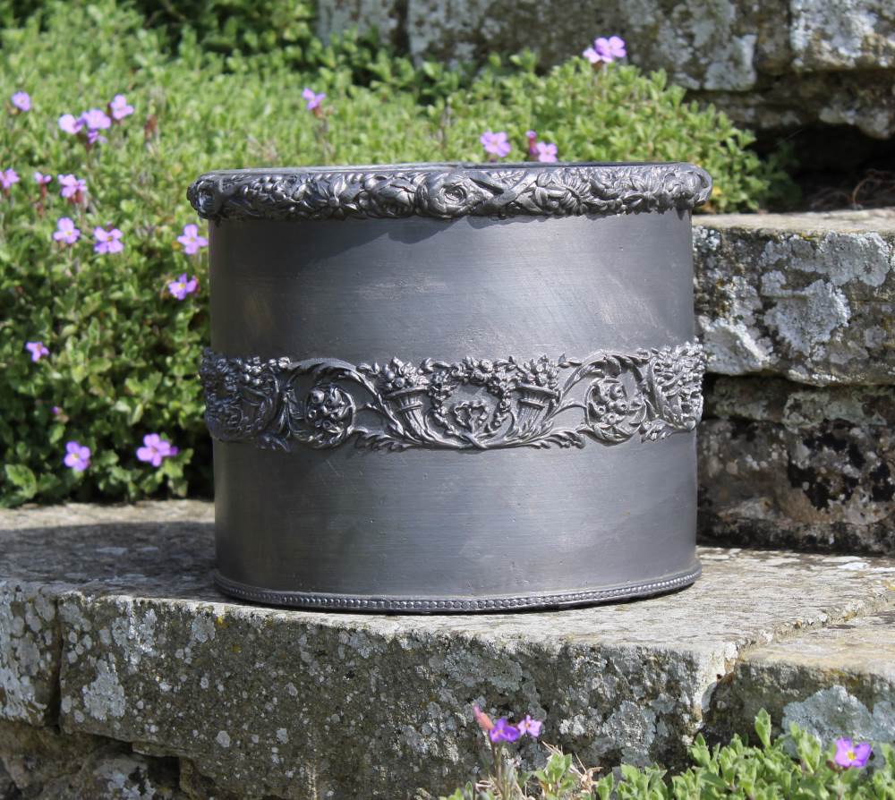This small lead planter is an absolute joy. Every garden has a neglected nook crying out to be enhanced by our small, round Cornucopia Lead Planter. Equally, it would take pride of place in any conservatory, garden room, or even on a balcony. Whether planted with a single stunning sunflower or a profusion of purple pansies, the striking beauty of the hand carved flora and fauna decoration will compete with any flower – maybe not in colour, but definitely in detail. This planter has been traditionally handmade in England by Heritage Lead Planters.