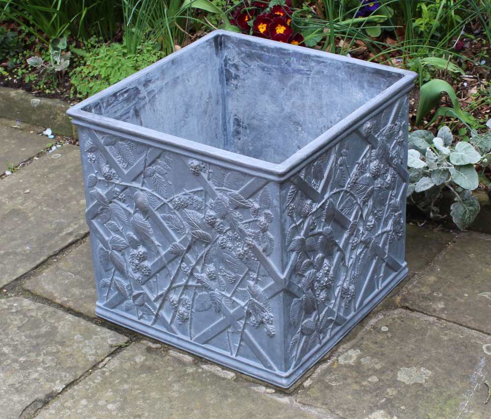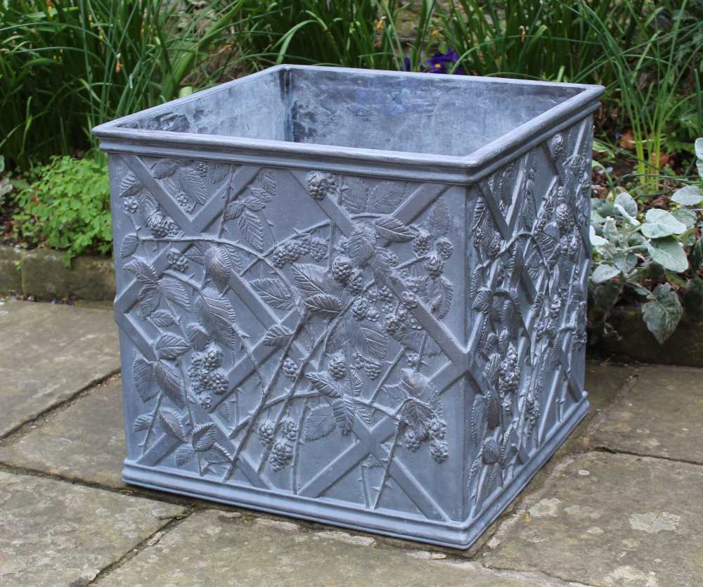 As with our Tumbling Blackberries Lead Cistern, we have incorporated every aspect of the blackberry – from its swirling, thorny vine, serrated leaves and bulging ripe fruit ready for picking – to seamlessly envelope our square planter on all four panels. Whether planted up with your favourite blooms, or transformed into a delightful water feature (the drainage hole is optional), we believe that our impressively illustrated Tumbling Blackberries Square Lead Planter is a joy to behold and would enhance even the smallest of gardens. This foundry-cast, solid lead planter has been traditionally handmade in England by Heritage Lead Planters.